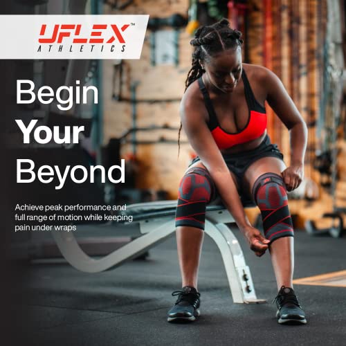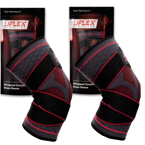 UFlex Knee Brace Compression Sleeve with Straps, Non Slip Running and Sports Support Braces for Men and Women, Sports Safety in Basketball, Tennis – Pain & Discomfort Related to Meniscus Tear (X-Large, 2 Pack)