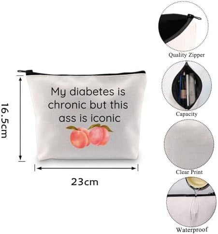 VAMSII Diabetes Supply Bag My Diabetes is Chronic but This Ass is Iconic Funny Type 1 Type 2 Diabetic Zipper Pouch