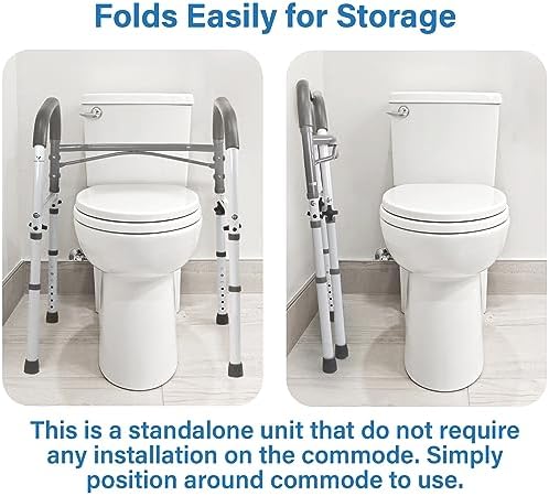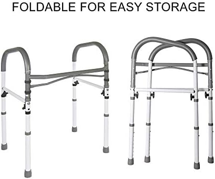 Vaunn Deluxe Folding Safety Toilet Rail, Adjustable and Foldable Toilet Safety Frame, Bathroom Handrail Assist Grab Bar Handle, Gray