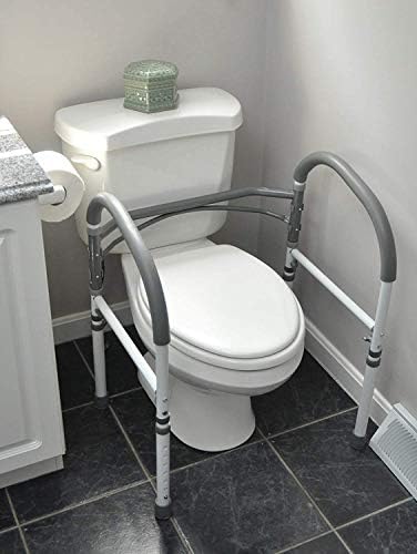 DURABLE & STURDY SUPPORT – Our reliable ADA compliant toilet safety frame is engineered with bathroom safety mind. This high-strength and heavy duty toilet rail features metal steel frames to support the user’s weight up to 300 lbs. Anti-slip padded grab bars ensure a firm and secure grip.