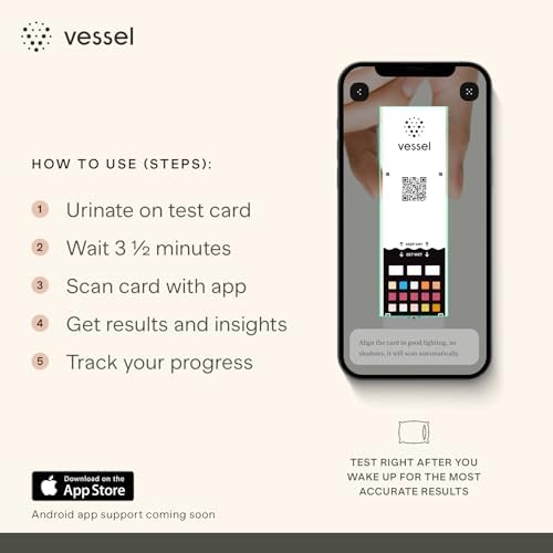 Vessel Health Wellness Urine Test – Easy at Home Test Measures Vitamins, Minerals, Hydration, Ketones, and More: Fast Accurate Results and Personalized Insights in App, Only Available on iOS, 1 Pack