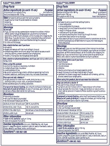 DayQuil Kids Berry helps relieve chest congestion, nasal congestion, and coughing so your child can get back to enjoying their day. At nighttime, NyQuil Kids Berry temporarily relieves your child’s cough, sneezing, and runny nose so they can get the rest they need. Trust Vicks when your child needs powerful and fast multi-symptom relief from bothersome cold symptoms. Specially designed by the experts at Vicks with your kids in mind, DayQuil & NyQuil Kids are free of alcohol, aspirin, acetaminophen, and high-fructose corn syrup. These medicines are specially formulated for children ages 6 and up. Vicks has been trusted for over 125 years.