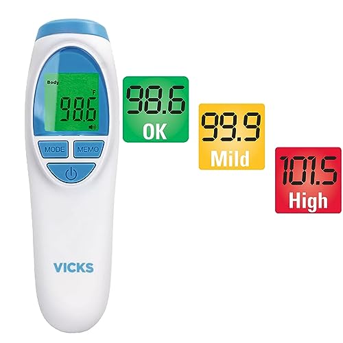 Vicks Forehead No-Touch 3 in 1 Thermometer LCD Display, Infrared/Non-Contact – Professional Accuracy 2 Seconds – for Food Oven Hot Water Kids Baby Adults Fever Alarm, Whole Family Home/Office