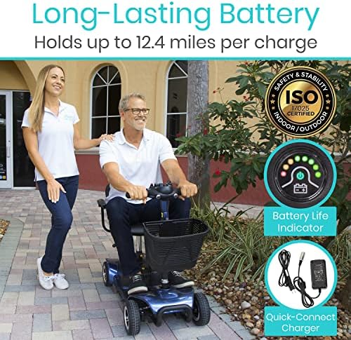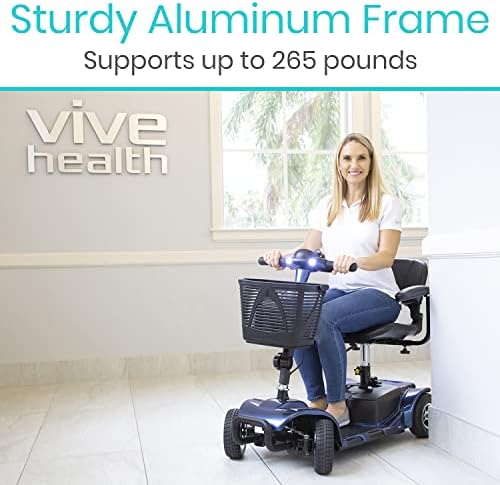 Vive 4 Wheel Mobility Scooter – Electric Powered Wheelchair Device – Compact Heavy Duty Mobile for Travel, Adults, Elderly – Long Range Power Extended Battery with Charger and Basket Included