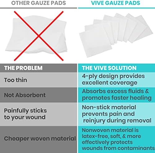 SOFT NON-STICK COTTON: With a non-adhesive design, the Vive Sterile Gauze Pads will not stick to your wound and cause unnecessary pain during application and removal. The nonwoven material is latex-free and soft, for greater comfort.
