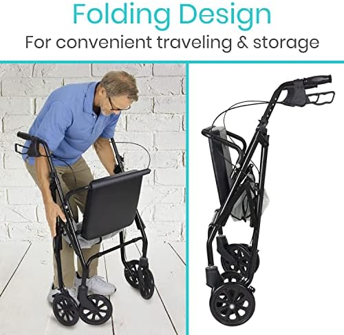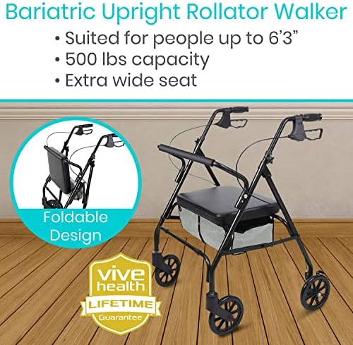 Vive Bariatric Rollator Walkers for Seniors – 500 lbs Capacity – Rolling Walker with Seat Lightweight Easy Folding – Mobility Aids & Equipment – Adult Heavy Duty 4 Wheel Walker with Brakes (Black)