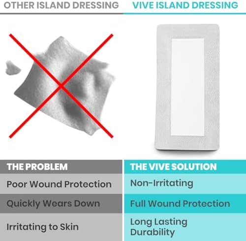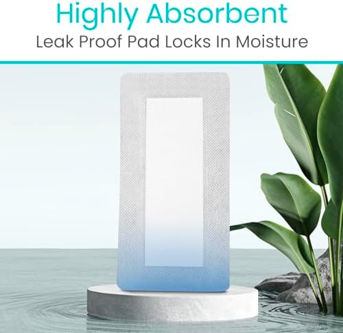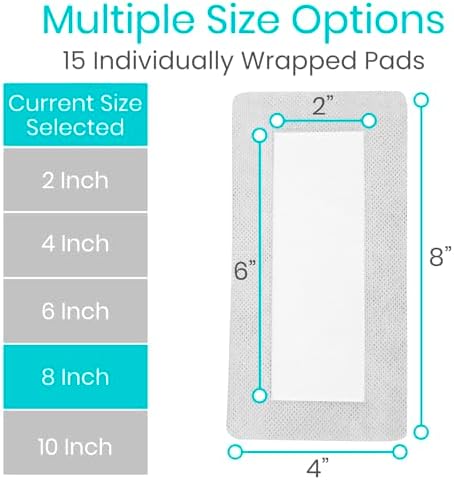 Vive Care Adhesive Border Gauze 4″x8″ (15pcs) – Ultra Absorbent Wound Care Dressing – Breathable Sterile Bed Sore Bandage – Individually Wrapped Non-Woven Pad for Ulcer – Bordered Non-Stick Island Dre