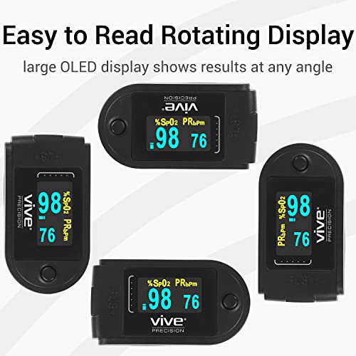 LIGHTWEIGHT AND PORTABLE: Compact and lightweight, the Vive Precision pulse oximeter easily slips into a pocket, tote or backpack and also includes a protective case with a belt clip for safe storage and travel. A lanyard is also included to keep the pulse oximeter close at hand for fast and accurate readings while on the go.