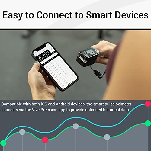 SIMPLE SMART COMPATIBILITY: Compatible with both iOS and Android devices, the smart pulse oximeter connects via the Vive Precision app to provide unlimited historical data. The Vive Precision app stores all of your measurements in one location for easily tracking your health and sharing results with your healthcare providers.