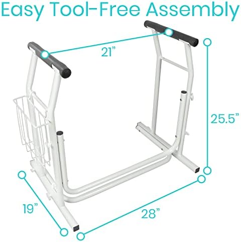 EASY TOOL-FREE ASSEMBLY: The freestanding toilet rail is easy to assemble: no tools required. Handles can also be easily removed for convenient storage. Lightweight and durable, the frame is corrosion resistant, perfect for long term use.
