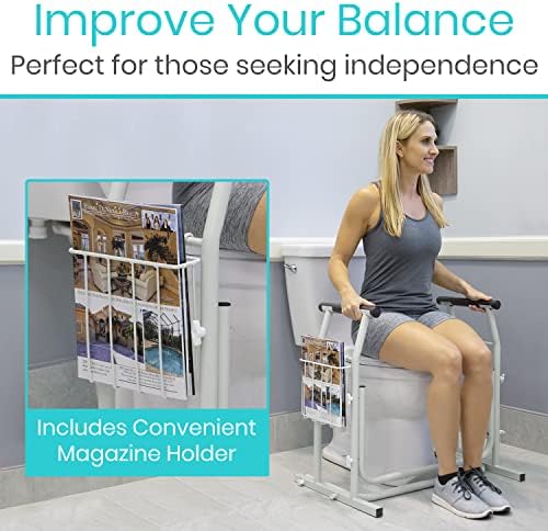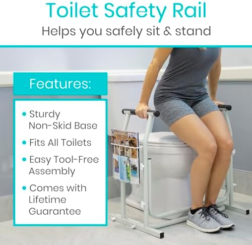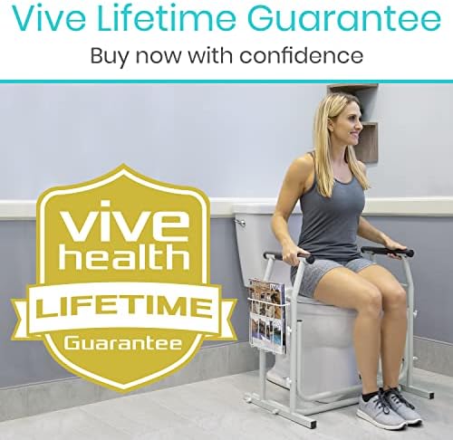 Vive Toilet Safety Rails for Elderly – Medical Bathroom Frame – Railing Helper for Handicap, Disabled, Seniors – Bariatric Assist Handrail Grab Bar – Adjustable Height, Padded Arms Fit Most Toilets