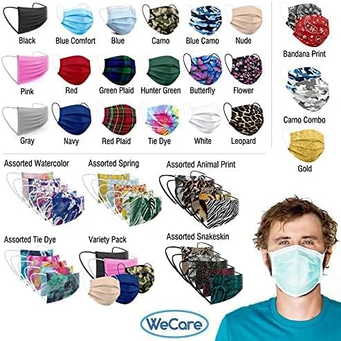 WECARE Disposable Face Mask Individually Wrapped – 50 Pack, Colored Face Masks