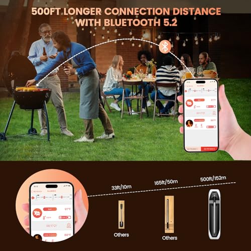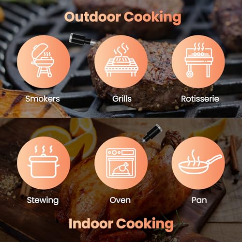Wireless Meat Thermometer,500Ft Smart Meat Thermometer with Probes,Food Thermometer Grill Thermometer with 2 in 1 Probe,Digital Cooking Meat Thermometer Booster for Rotisserie BBQ Grill Oven Smoker