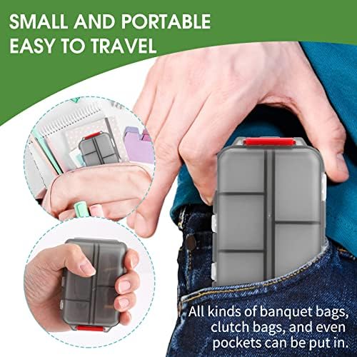【Double Lock】Organizer box the inner sealing cover and the outer safety lock can close the travel pill box tightly to prevent pills from falling off, or being affected by moisture and dust. Small pill cases help you say goodbye to wet pills