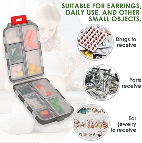 2 Pieces Travel Pill Box Organizer Case Small Daily Pill Case Pill Moisture Proof Container Holder 10 Compartments Medicine Vitamin Container for Different Medicines