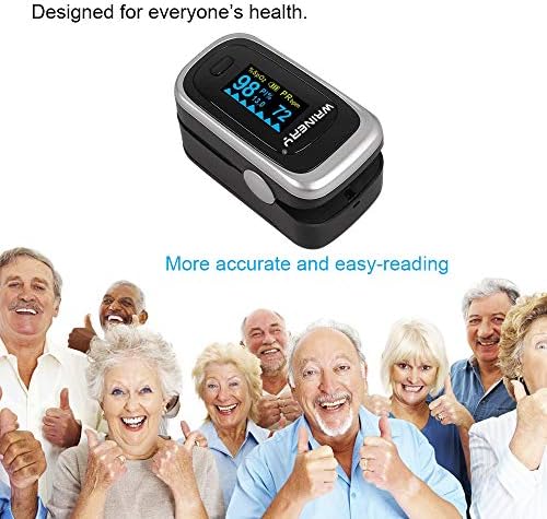 Accurate, Reliable — WRINERY innovated fingertip pulse oximeter provides accurate and reliable measure method for oxygen level in the blood and reads the pulse rate data and O2 saturation within 8 seconds. It is highly recommended to use the device in a stationary condition while not in motion for accurate reading data.