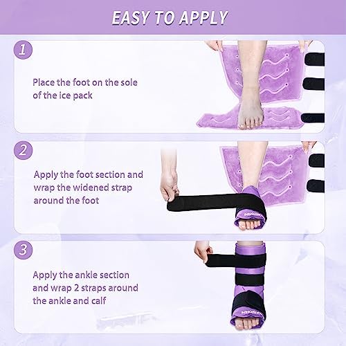 XXL Ankle Foot Ice Pack Wrap for Foot Injuries, Full Coverage Ankle Ice Wrap, Gel Ice Packs Reusable for Plantar Fasciitis, Achilles Tendonitis, Sprained Ankles and Heels, Fibular Injury, Purple