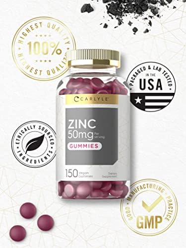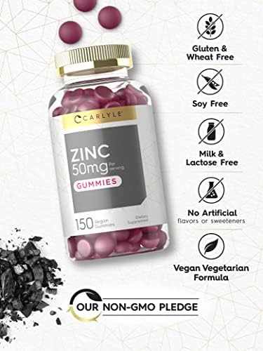 Zinc 50mg Gummies | 150 Count | Vegan, Non-GMO and Gluten Free Formula | Zinc Citrate Dietary Supplement | by Carlyle