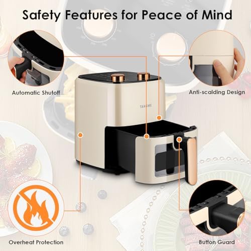 Watch Your Food Cook – The interior lights and extra-large air fryer oven window allow you to watch and enjoy your food’s cooking progress.The classic double knob design is easy to use for both children and the elderly. With automatic power off memory function, when you put the basket back in, the air fryer automatically continues to work