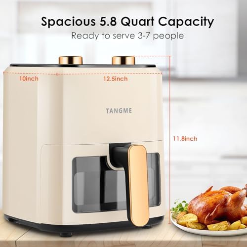 Air Fryer Oven, 5.8Quart Air Fryer with Viewing Window 1350w Electric Air Frying Toaster Oven for Baking, Roasting, Dehydrating, Auto Shutoff, Non-stick and Dishwasher Safe Basket