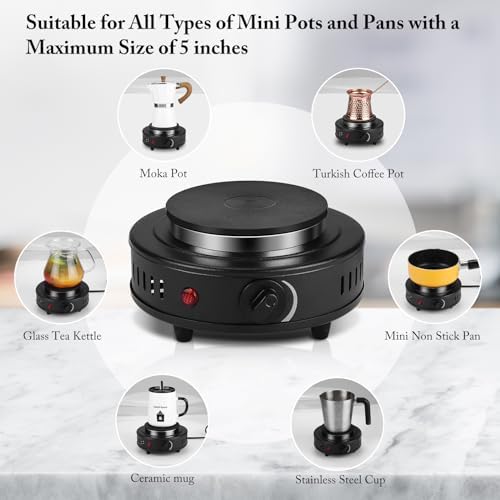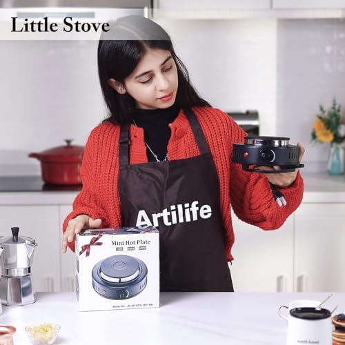 Artilife Mini Hot Plate Small Hot Plate,Small Hot Plate Electric Mini,Mini Hot Plate Electric,Cast Iron Electric Hot Plate,Perfect Size for Moka Pot (500W Black Small Hot Plate)
