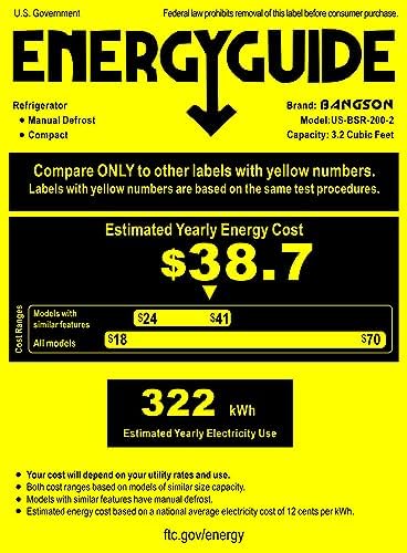 ❄【 Refrigeration and freezing 】 The small refrigeration effect is excellent. By turning the thermostat knob of the small refrigerator, there are five levels of adjustable thermostat control, with the first gear being the hottest and the fifth gear being the coldest. The cooling capacity is 2.26 cubic feet, and the freshness of the food is maintained from 33.8 degrees Fahrenheit to 46.4 degrees Fahrenheit. BANGSON refrigerator can meet your more choices.
