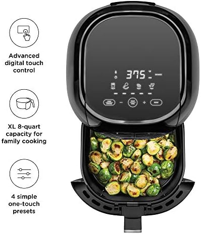Chefman TurboFry Touch 8 Quart Air Fryer w/ XL Viewing Window & Advanced Digital Display, Fry with Less Oil for Healthy Food, Adjustable Temperature Control, Cooking Presets & Dishwasher-Safe Basket
