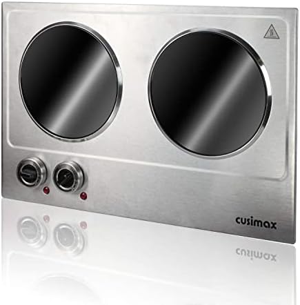 CUSIMAX 1800W Ceramic Electric Hot Plate for Cooking, Dual Control Infrared Portable Countertop Burner, Glass Cooktop, Silver, Stainless Steel-Upgraded Version