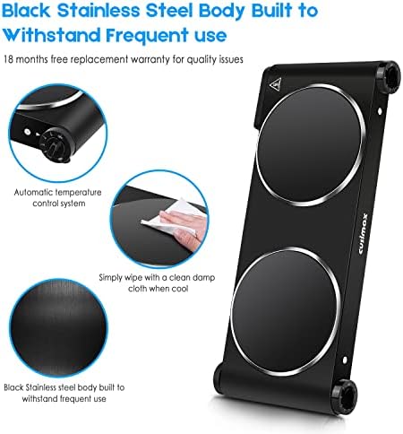 [SAFE & DURABLE] NO Radiation, our infrared cooktop works by far infrared heating and has no electromagnetic radiation, and therefore, it is harmless to the human body. Automatic safety shutoff function with temperature regulated by a thermostat, it is normal when the indicator turns on and off automatically. Black Stainless steel body built to withstand frequent use. Durable ceramic cooktop.