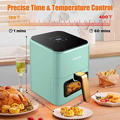 DEIME Air Fryer 4.2 QT Oilless Hot AirFryer 1200W Healthy Cooker Small Oven with 7 Presets, Digital LCD Touch Screen, Visual Cooking Window, Non-Stick Basket, Included Recipe (Green)