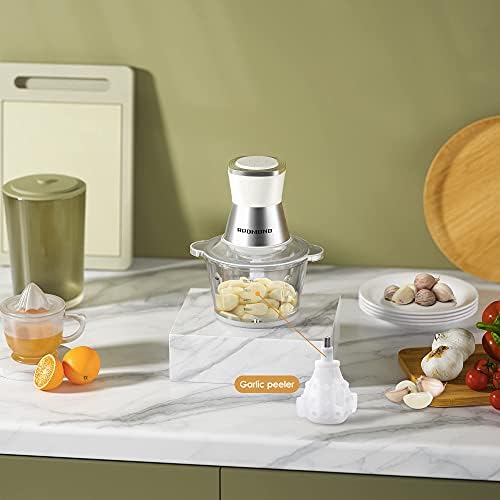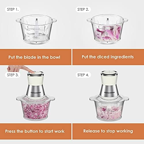 Large Capacity Glass Bowl: This food chopper come with a 2L high capacity thick glass bowl, which is transparent and visible to monitor consistency. Compared with plastic bowls, our food-grade glass bowl is healthier, more durable and more shockproof, easier to clean because of non-stick grease.