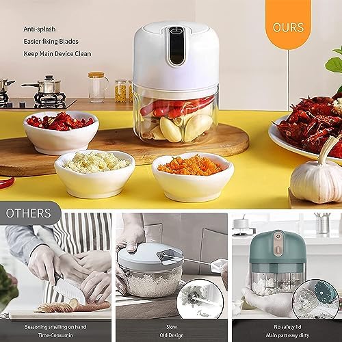 Electric Mini Garlic Chopper, 250ML USB Rechargeable Portable Electric Food Chopper, Wireless Small Food Processor for Chopping Garlic, Ginger, Chili, Minced Meat, Onion, Etc Kitchen Tools-250ml,2.0