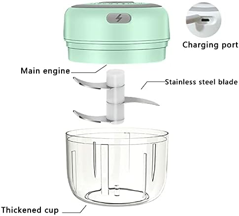 【Portable USB Electric Mini Chopper (250ML)】 Vegetable Chopper, Food Chopper, Garlic Chopper, Veggie Chopper, Salad Chopper, Lettuce Chopper, Onion Chopper, Chili Chopper, Tomato Chopper, Ginger Meat Mincer. 【Great Kitchen Helper】 Electric mini garlic chopper only needs to press the button at the top to automatically stir, it will help you chop garlic, ginger, peppers, onions, nuts. Saving time and effort. (Note: Please cut the ingredients into small pieces before chopping it.) 【USB Rechargeable & Portable Electric Mini Garlic Chopper】 The Portable Mini Food Chopper is powered by USB. Charging 3 hours can last for 1 month. No more chargers, use garlic mincer electric chopper for any where. Light in weight, suitable for both home kitchen or mini kitchen, and easy to take the electric mini chopper with you when go out or traveling. 【Easy to Use and Clean】 Just put food or ingredients in the mini chopper electric by hand, lock the cover and start with one click to quickly shred food. The electric mini chopper contains 3 parts: Lid, 2 Blades, Bowl. The 3 parts can be seperated so that you can clean easily. 【Product Specification】 1.Capacity: 8.9 OZ (250ML) 2.Product material: 304 stainless stee 3 blades 3.Power: 30w 4.Rated voltage: 3.7V 5.Power: USB rechargeable 6.Waterproof: all body is waterproof and easy to clean. 7.Switch: one touch button to turn on or off. 8.Function: cutting vegetables, minced meat, stirring, mixing 【Steps for use】 1.Place the blade Place the blades first before fill the ingredient in the container. 2.Cover the lid It is necessary to cover the lid in the right way. the Vegetable Chopper, Salad chopper Mini Chopper will not work if the cover is not on the right place. 3.Press power switch Press the power switch on the top of the chopper, and hold it for a few seconds, you will get an evenly shred food.