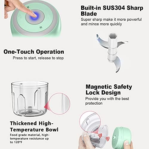 【One-touch Operation】 The one-touch operation design of the mini electric chopper will free your hand when you are chopping food , just put food or ingredients in the mini chopper electric, lock the cover and press the button of the chopper, you can get an evenly shred food in a few seconds, saving you more time and energy, perfect for your everyday cooking.