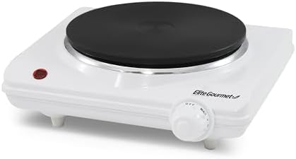 Elite Gourmet ESB-301F Countertop Single Cast Iron Burner, 1000 Watts Electric Hot Plate, Temperature Controls, Power Indicator Lights, Easy to Clean, White