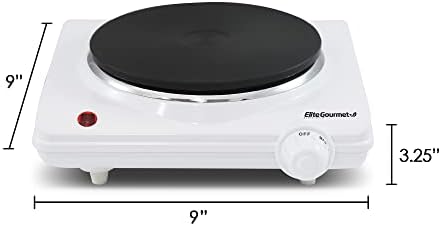Cooking is quick, easy and consistent with the Elite Cuisine Electric Single Buffet Burner. This portable electric hot plate offers reliable heating and takes up minimal cooking space. At 1,000 watts, it heats up quickly with an adjustable temperature knob. The non-stick cast iron hot plate will ensure even cooking and makes clean up a breeze. It features adjustable temperature control with Off, Warm, Low, Medium, and High settings. The heavy duty cast-iron flat heating plate is easy to clean. The cool-touch base and non-skid rubber feet for stable cooking. It’s perfect when you need an extra heat source for holiday cooking and entertaining, or simply use it to keep food warm at a buffet station.
