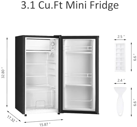 HAILANG 3.1 Cu.Ft Mini Fridge with Freezer, Single Door Mini Refrigerator, 5 Settings Temperature Adjustable, Compact Refrigerator for Apartment,Dorm, Office, Bedroom