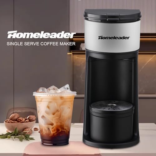 Homeleader Single Serve Coffer Maker for K-Cup and Ground Coffee, Coffee Machine with Self-Cleaning Function,6 to14oz Brew Sizes,Black