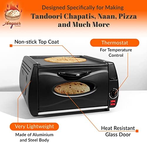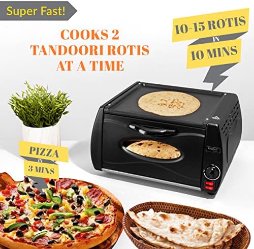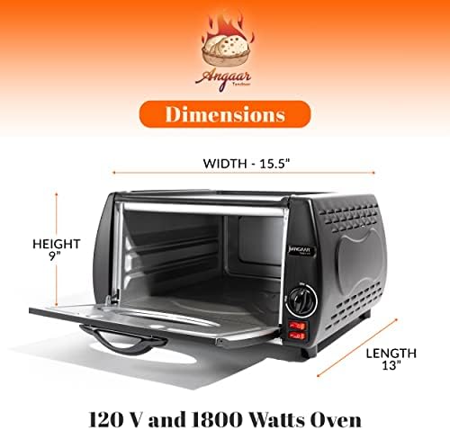 Compact and Lightweight: Angaar electric oven is 15.5” L x 13” W x 9” H making it perfect for kitchen countertops whilst also having the internal capacity to bake a pizza within 4 minutes and 10-15 Tandoori Rotis in 10 minutes