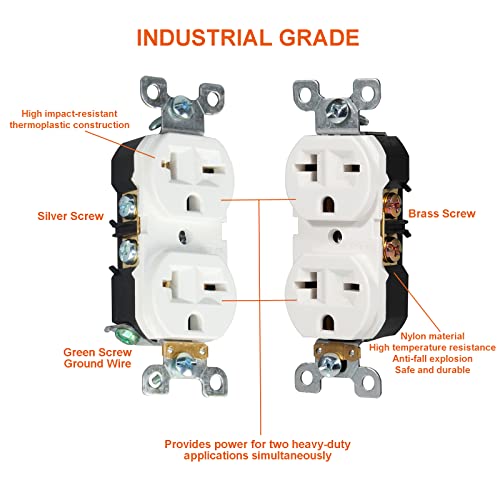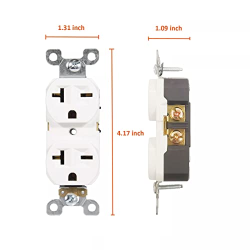 Nema 6-20 Duplex Receptacle, 20 Amp 250 Volt Outlet, Industrial Grade Wall Receptacle, 2-Pole, 3-Wire, 6-15R Outlet 6-20R Receptacle, White, 10 Pack