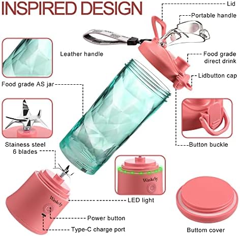 Portable Blender 20 Oz, Personal Size Blender for Shakes and Smoothies with 6 Blades, Mini Small Smoothie Blender Bottles for Kitchen, Home, Travel (Pink)