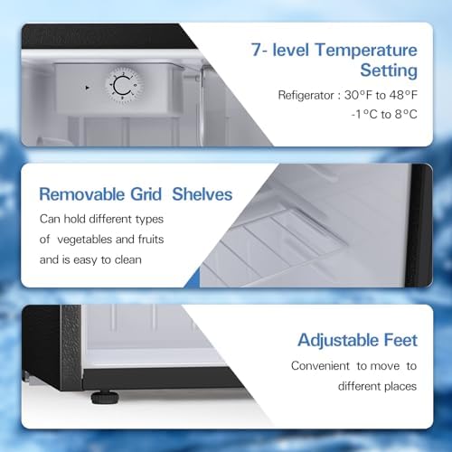 【TEMPERATURE CONTROL】The R.W. FLAME Mini Refrigerator has a rotary thermostat button inside. The freezer has a temperature range of 30°F to 48°F (-1°C to 8°C not suitable for storing ice cream) and the fridge offers 7 variable temperature settings depending on your needs. Includes a compact freezer that allows you to make ice cubes, and keep food fresh and drinks chilled.