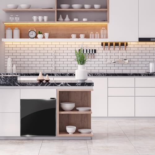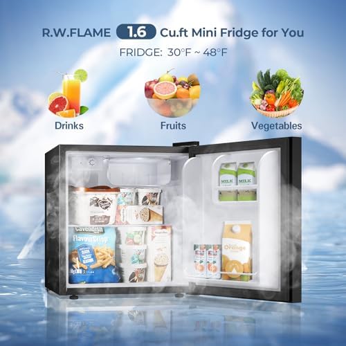 R.W.FLAME 1.6 Cu.ft Mini Fridge with Freezer, Compact Reversible Single Door, Adjustable Thermostat, Low Noise, Energy Efficient for Office, Dorm, Bedroom, Apartment (Black)