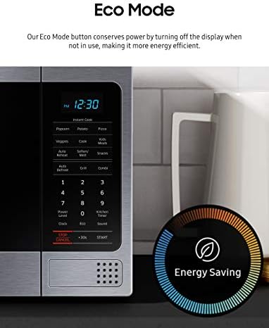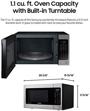 SAMSUNG 1.1 Cu Ft Countertop Microwave Oven w/ Grilling Element, Ceramic Enamel Interior, Auto Cook Options,1000 Watt, MG11H2020CT/AA, Stainless Steel, Black w/ Mirror Finish,15.8″D x 20.4″W x 11.7″H