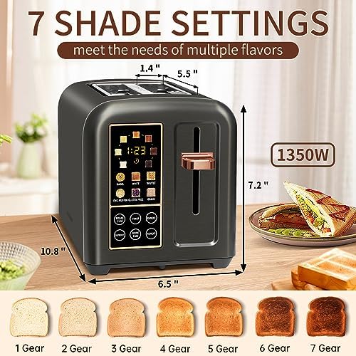 SEEDEEM Toaster 2 Slice, Stainless Toaster LCD Display&Touch Button, 50% Faster Heating Speed, 1.4” Wide Slots Toaster, 4 Basic+More Timer Functions, Removable Crumb Tray, 1350W, Dark Metallic