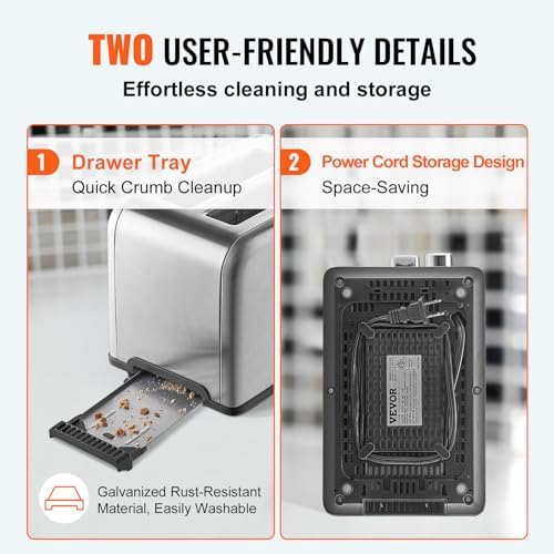 VEVOR Retro Stainless Steel Toaster, 2 Slice, 825W 1.5” Extra Wide Slots Toaster with Removable Crumb Tray 6 Browning Levels, Reheat Cancel Defrost and Bagel Functions for Toasting Bread Bagel Waffle