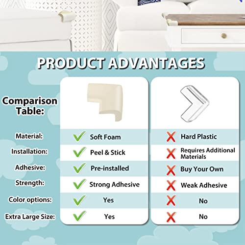 12 Pack Soft Corner Protector Baby Proofing Edge and Corner Guards, Safety Pre-Taped Rubber Foam Furniture Bumper for Fireplace, Table, Stair, Cabinet (Off White)