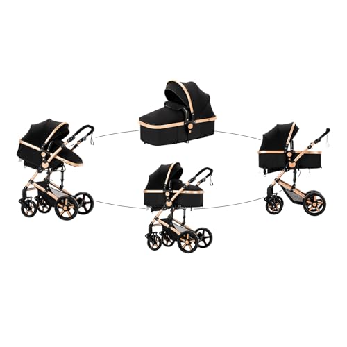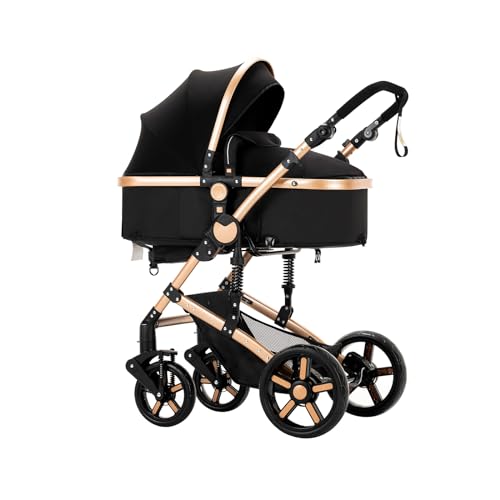 2 in 1 Baby Stroller with Bassinet Convertible Reversible Standard Baby Pram Portable Pushchair Infant Buggy Baby Carriage Foldable High Landscape Pram for Toddler Newborn (2US588-BG)