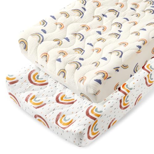 XLSXEXCL 2 Pack Changing Pad Covers, Baby Changing Pads Muslin Changing Pad Covers Soft Changing Table Pads Cotton Changing Pad Sheets Changing Pads for Dressers for Girls or Boys, 17" x 33"