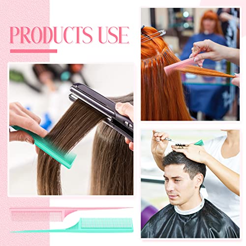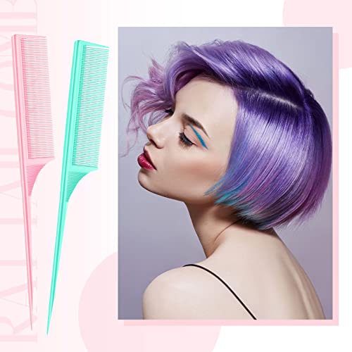 2 Pack Rat Tail Combs for Women Fine Tooth Comb Parting Tip Carbon Fiber Root Teasing Anti Static Heat Resistant Adding Volume Evening Hair Styling (Pink, Green)